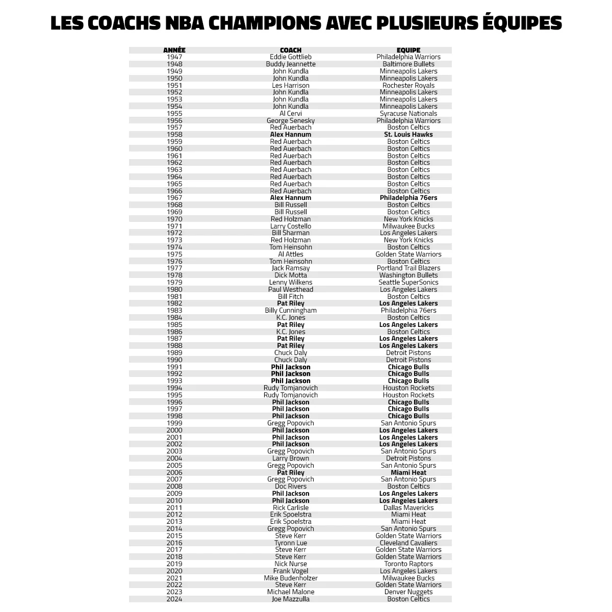En cas de victoire finale, il pourrait même devenir le quatrième coach à remporter le titre avec deux franchises différentes. Jusqu'à présent, seuls Alex Hannum (St. Louis Hawks, Philadelphia 76ers), Pat Riley (Los Angeles Lakers, Miami Heat) et Phil Jackson (Chicago Bulls, Los Angeles Lakers) ont déjà réussi pareil exploit.
