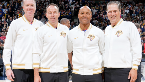 « Nous sommes reconnaissants envers ces 12 arbitres et leur dévouement à servir le jeu tout au long de la saison. Être sélectionné pour officier lors des Finales NBA est le plus grand honneur pour un arbitre NBA, et je félicite ce groupe exceptionnel pour cette réussite méritée », a salué Byron Spruell, président des opérations de la ligue.