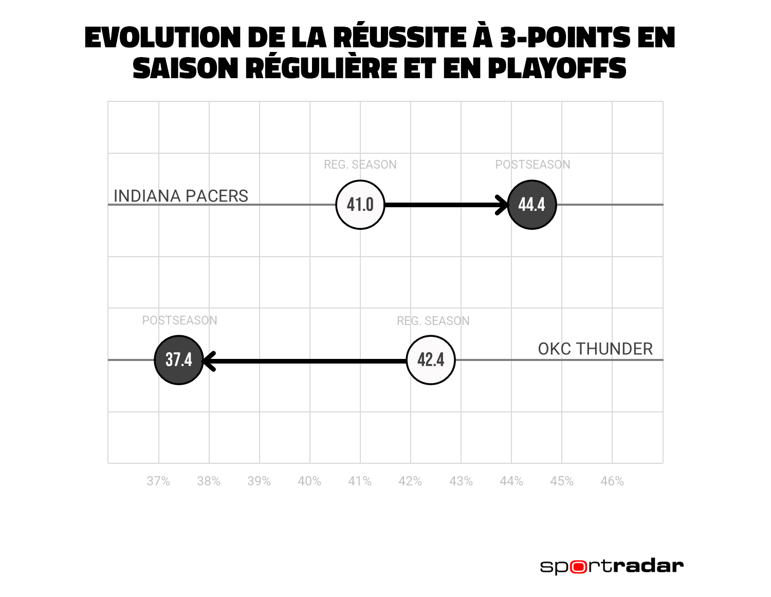 Deux franchises qui font d’ailleurs partie des plus petits marchés de la NBA, Indiana étant à la 22e place au niveau du nombre de téléspectateurs dans sa zone urbaine, et Oklahoma City 26e sur 28.