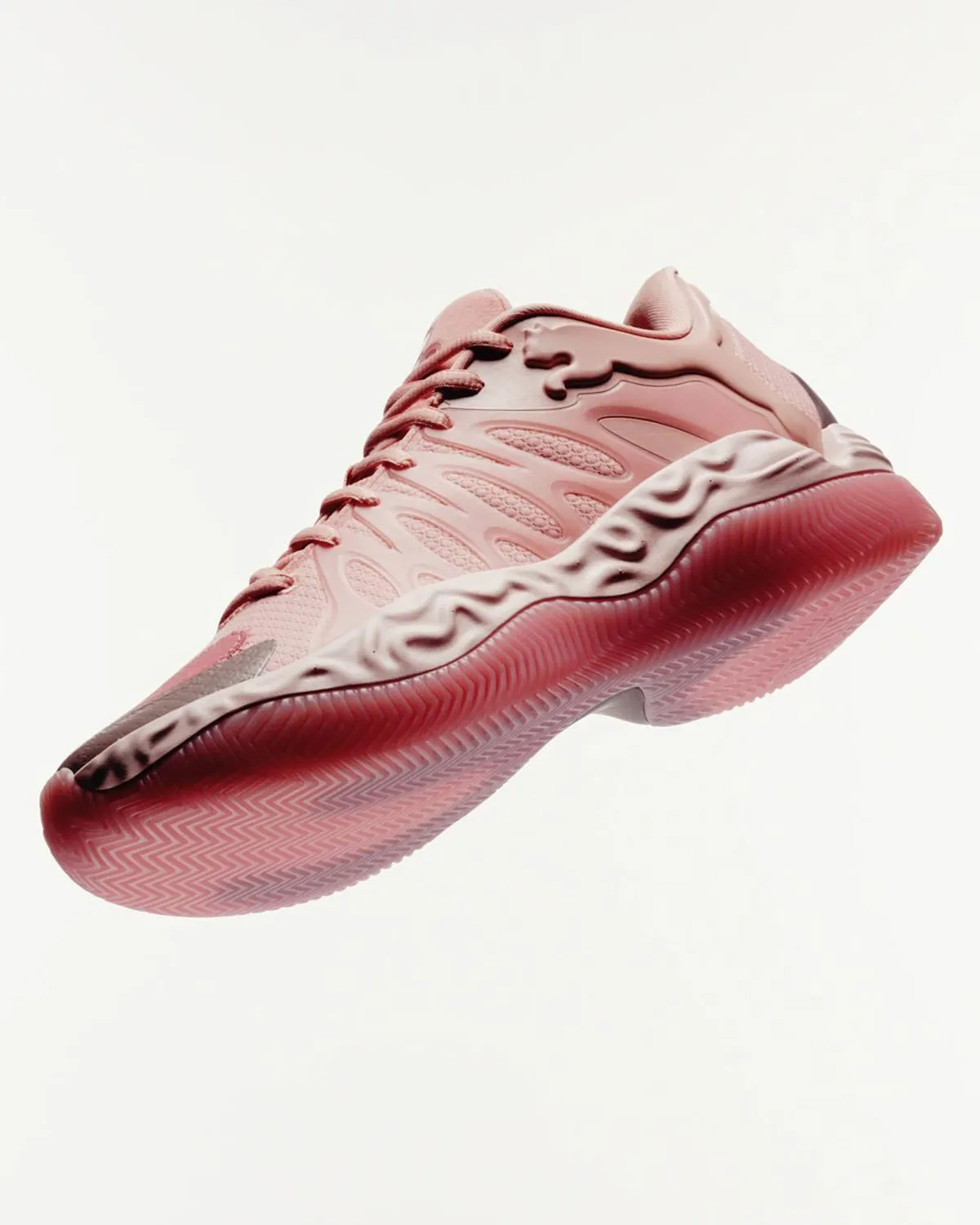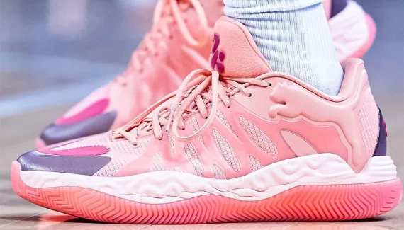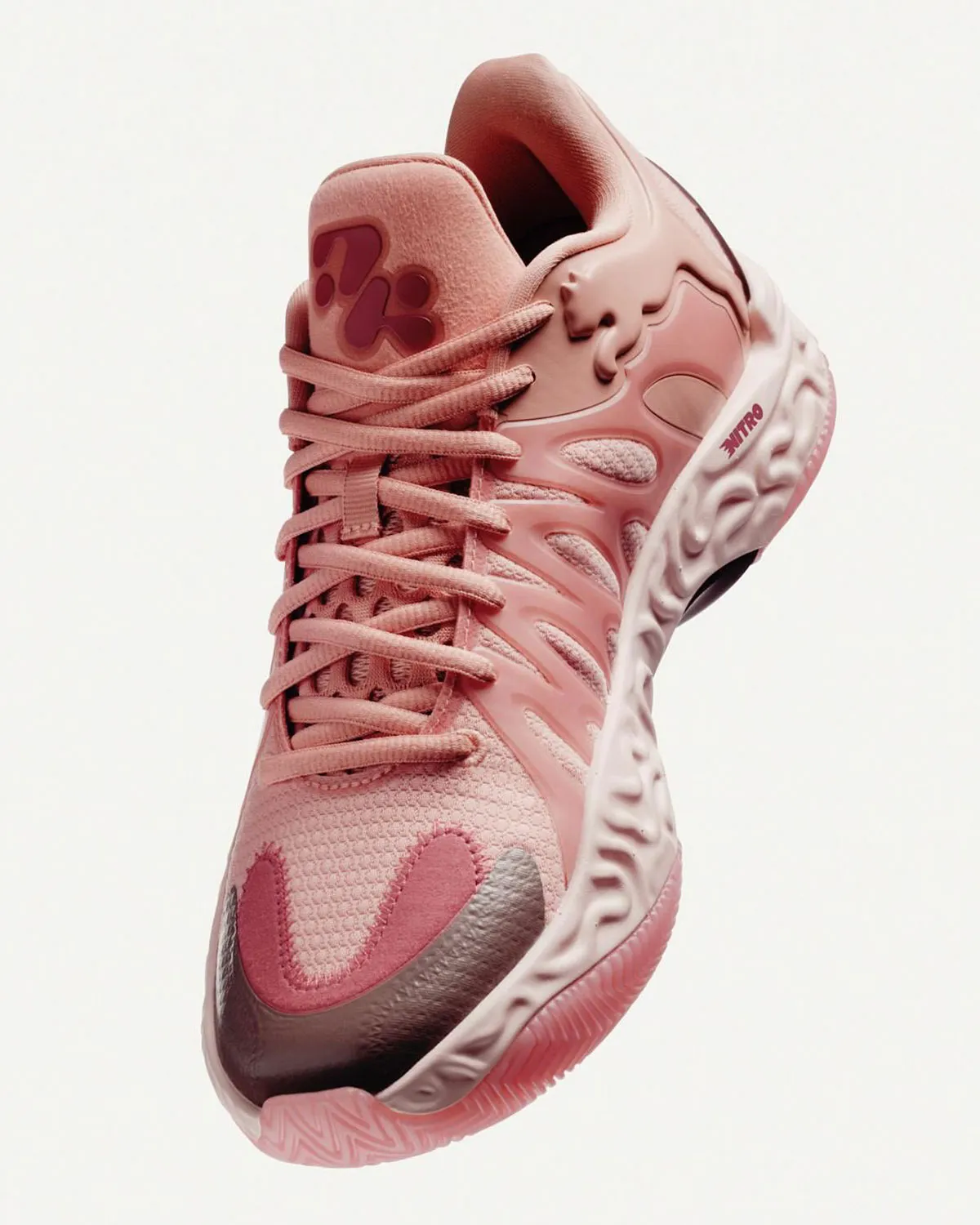 Les fruits de cette collaboration ont donné cette « Hali 1 » déjà unique, inspirée des textures « signature » du créateur new-yorkais, sur la tige ici habillée du coloris « Hibiscus » aux différents tons rose pâle, mais aussi sur la semelle intermédiaire en mousse Nitro. Le logo Puma est bien visible au niveau de la cheville, tout comme le nouveau logo du joueur, sur la languette. Et le meneur ne pouvait rêver meilleure première…