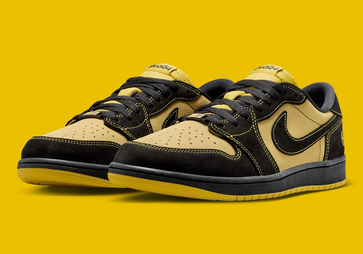 Comme l’an dernier, on retrouve aussi une magnifique Air Jordan 1 Low, elle aussi en noir et jaune et estampillée « Quai 54 », avec en bonus un pendentif accroché au lacet orné de rouge et blanc et sur lequel on retrouve le « Jumpman » de Jordan Brand. On peut également y lire « World Streetball Championship ».