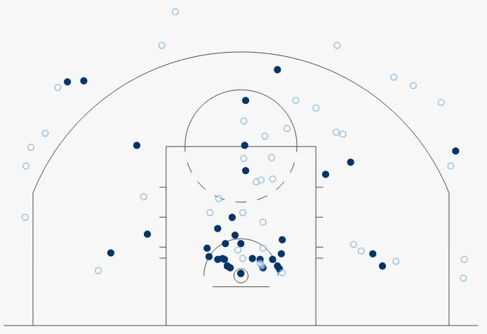 Pour l'anecdote, c'est la première fois depuis 2019 qu'une équipe remporte un match de playoffs en réussissant trois tirs à 3-points ou moins. À l'époque, les Nuggets de Nikola Jokic s'étaient imposés (90-86) au Game 7 de leur premier tour face aux Spurs en shootant à 2/20 de loin. Et pour un match des Finals, il faut remonter à 2010, avec une victoire des Celtics face aux Lakers, dans le Game 5, malgré un 3/12 derrière la ligne à 3-points.