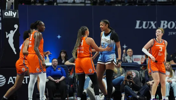Connecticut et Chicago jouaient gros dimanche alors que les deux formations affichaient le même bilan, partageant le bas de tableau avec Dallas, toujours bon dernier avec une seule victoire au compteur. À la paire Mabrey-Charles (22 et 19 points) du Sun, le Sky a répondu par son collectif avec 7 joueuses à 7 points et plus pour aller chercher la victoire, le tout bonifié par le triple-double d’Angel Reese (11 points, 13 rebonds, 11 passes décisives) qui remonte progressivement la pente après un début de saison compliqué.