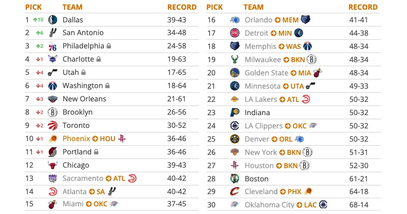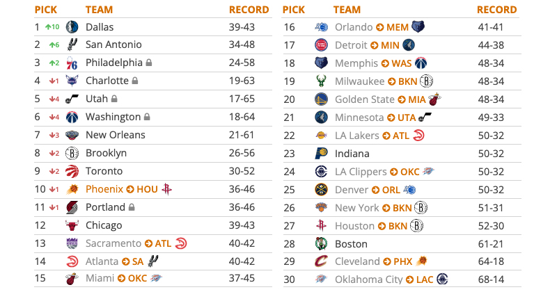 Grossièrement, les Grizzlies devraient récupérer le plus mauvais choix des Suns et des Wizards, ce qui pourrait les placer en milieu voire en fin de “lottery”, soit entre les 8e et 14e places.