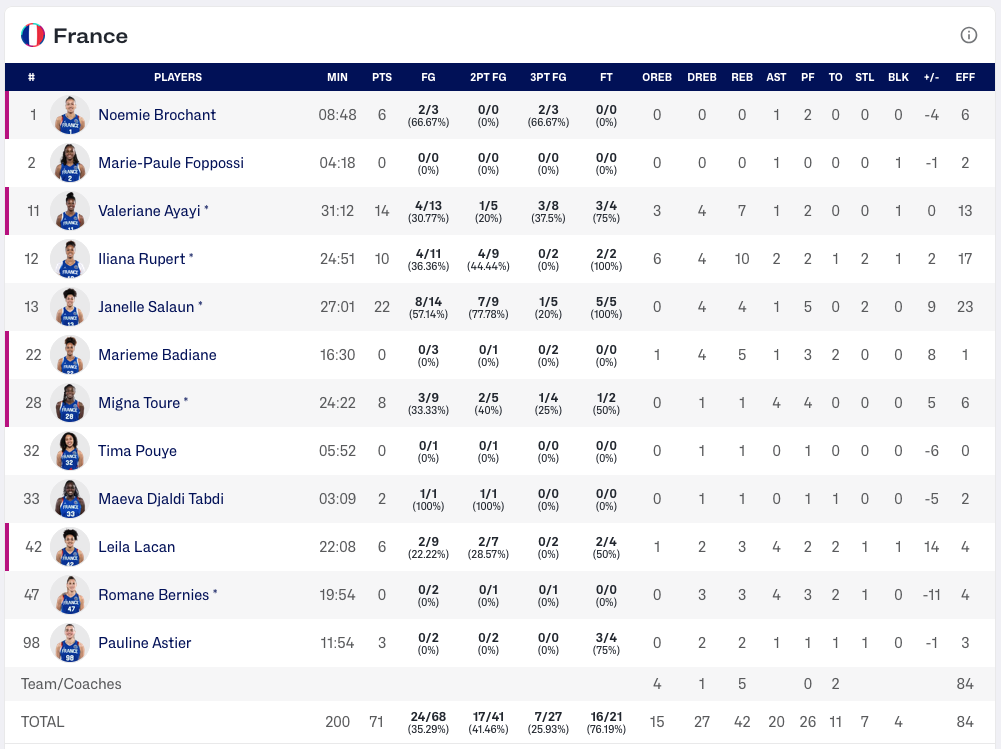 Pendant longtemps, elles n’ont ainsi pas réussi à imposer leur défense, qui les avait portées pendant les Jeux olympiques de Paris. Extrêmement maladroites de loin mais aussi près du cercle, elles ont heureusement pu compter sur l’agressivité de Janelle Salaün (22 points) mais s’étaient retrouvées à quasiment dix points avant la mi-temps, alors que pas grand-chose n’allait pour le camp tricolore…