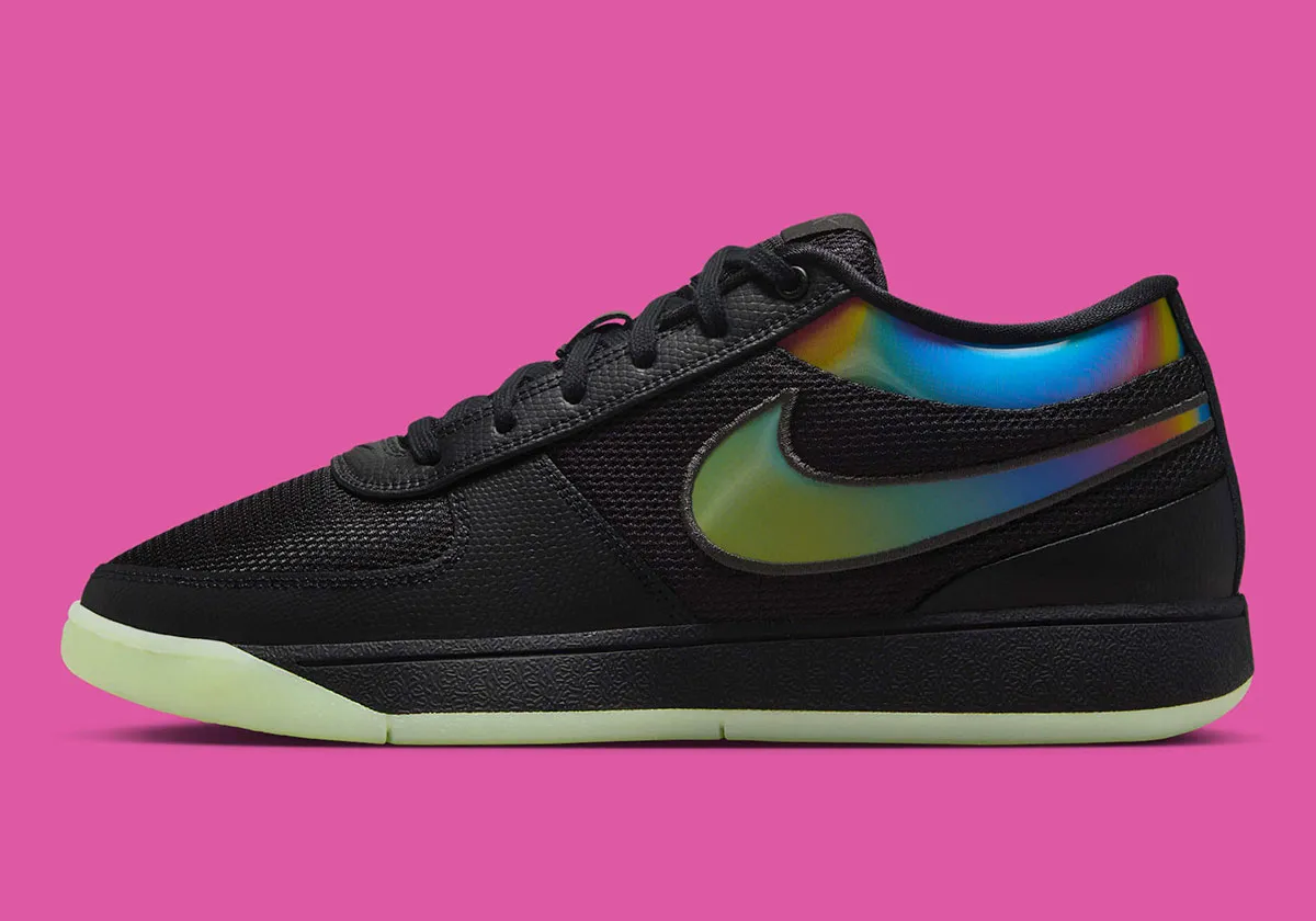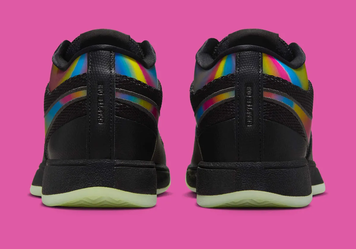 Baptisé « iridescent », il se se distingue par ses touches iridescentes sur le « Swoosh » et le col pour accompagner une tige en cuir et mesh noir. La semelle extérieure semble quant à elle phosphorescente et brillera donc même dans le noir.