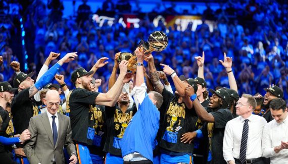 « C’est un bon premier », sourit Jalen Williams en regardant l’imposant et « lourd » trophée à côté de lui en conférence de presse. L’ailier du Thunder sous-entend clairement qu’il n’a pas l’intention de se contenter de ce seul titre NBA arraché face aux Pacers dimanche.