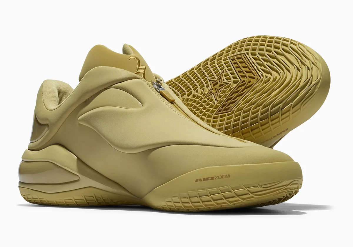 La tige opte pour un effet épuré et futuriste, dessinée de la main de SGA lui-même. On peut souligner le zip pour recouvrir les lacets et des rembourrages conséquents autour du col comme principales spécificités.