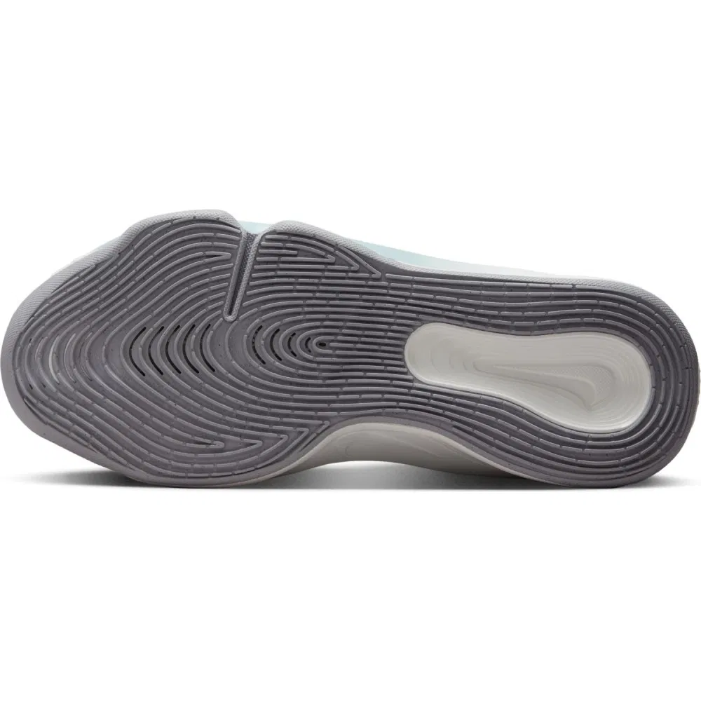 Ce dernier se caractérise par différentes teintes de gris pour habiller la tige et un « Swoosh » noir ressortant sur l’empeigne. L’ensemble repose sur une semelle blanche et grise assorti d’un léger filet bleu ciel.