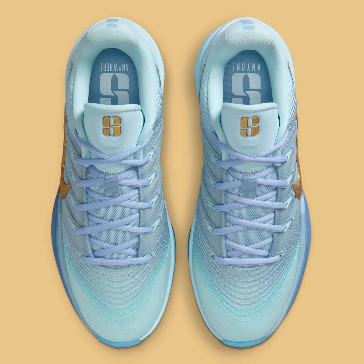 En daim sur le modèle “All Star”, le “Swoosh”, qui ressort ici en doré, pourrait changer de composition au fil des coloris. La semelle garde quant à elle une unité Zoom Air à l’avant du pied et une mousse Cushlon en complément intermédiaire. Des câbles Flywire épais servent à la fois au maintien et d’œillets pour les lacets, tandis que des lignes de couture extérieures s’étendent sur le milieu du pied pour créer un motif ondulé. Le logo “S” de Sabrina Ionescu figure toujours sur la languette.