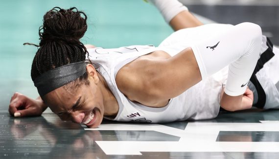 Lors de la défaite face au Liberty, A’ja Wilson s’est blessée au poignet au milieu du deuxième quart-temps. Alors qu’elle attaquait le cercle, la MVP en titre a percuté Leonie Fiebich, puis elle a atterri sur son poignet.
