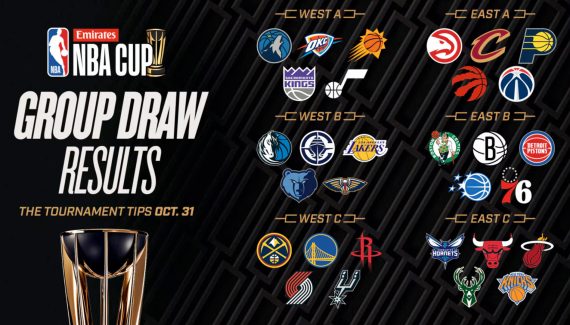 La ligue vient ainsi de dévoiler les six groupes de l’Emirates NBA Cup, dont les matchs de poules auront lieu entre le 31 octobre et le 20 novembre. Ensuite, place aux quarts de finale les 9 et 10 décembre puis aux demi-finales et à la finale, les 13 et 16 décembre, le « Final Four » ayant lieu à Las Vegas. Avec Amazon Prime à la diffusion !