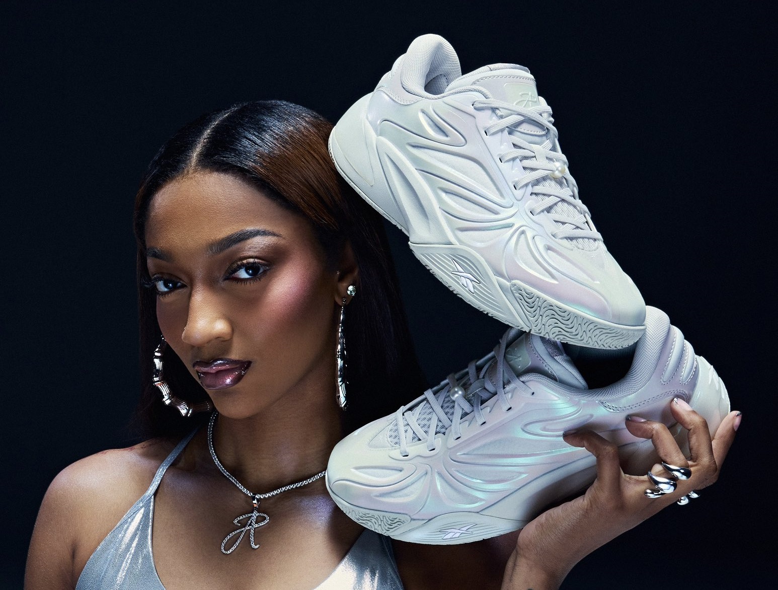 Dans la foulée, Reebok a donc dévoilé les premières images de cette nouvelle « signature shoe », habillée du coloris « Diamond Dust ». Celui se présente avec une tige blanche aux teintes iridescentes « qui reflètent à la fois la détermination et le glamour qu’Angel Reese apporte au jeu », précise l’équipementier.