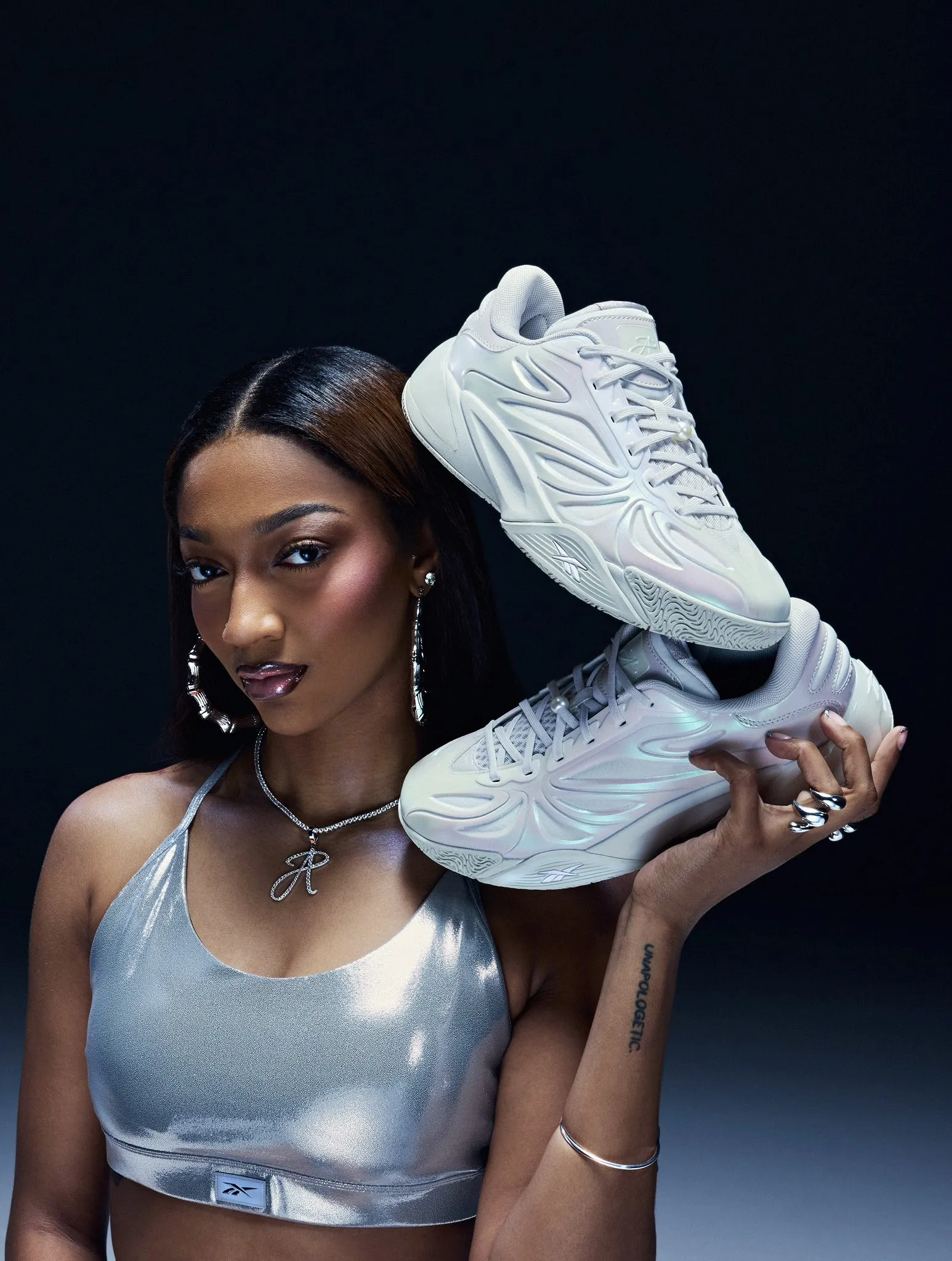 Dans la foulée, Reebok a donc dévoilé les premières images de cette nouvelle « signature shoe », habillée du coloris « Diamond Dust ». Celui se présente avec une tige blanche aux teintes iridescentes « qui reflètent à la fois la détermination et le glamour qu'Angel Reese apporte au jeu », précise l'équipementier.