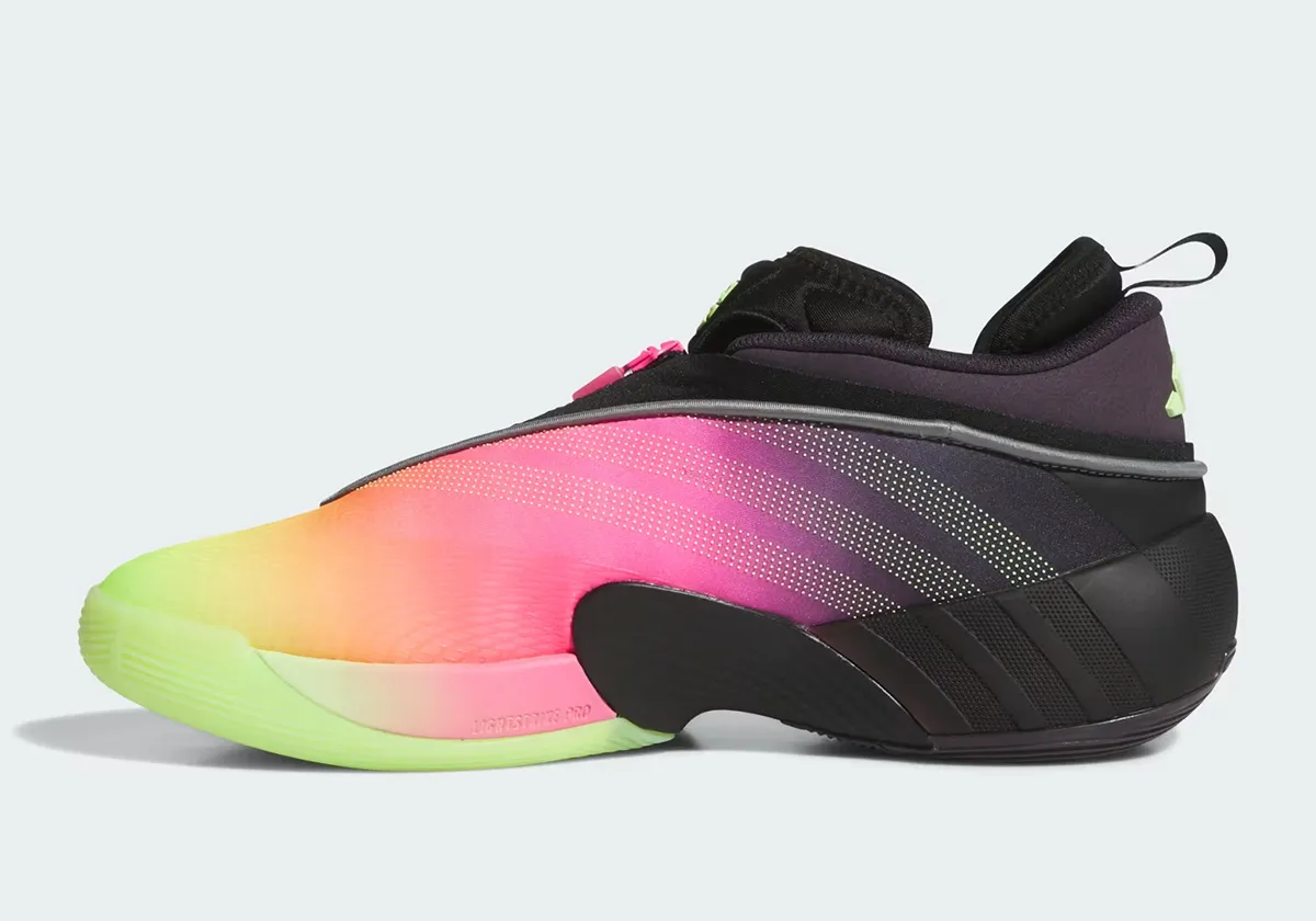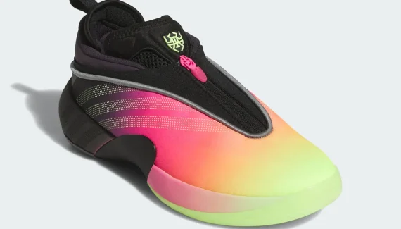 Enfin, la D.O.N. Issue #7 de Donovan Mitchell est arrivée de l’autre côté de l’Atlantique ! La paire avait déjà été présentée en marge du dernier All-Star Game et mise en avant par le joueur des Cavs lors de sa campagne de playoffs. L’arrière des Cavs avait notamment opté pour ce coloris « flashy » qui est sorti le 12 juillet aux Etats-Unis, avec un dégradé allant du vert fluo au noir sur la tige, passant par du jaune, de l’orange, du rose et du violet, dans un style ressemblant fortement au coloris de la D.O.N. Issue #6 que le joueur avait également dévoilé lors des playoffs, la saison dernière.