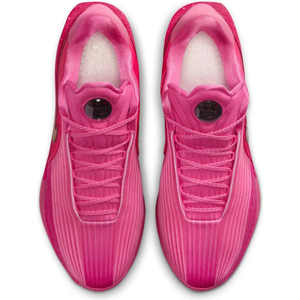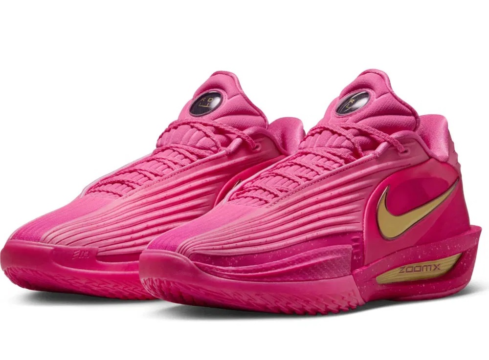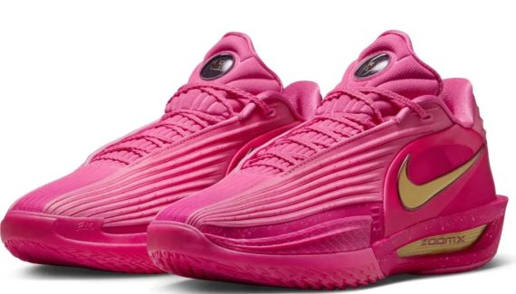 L’ancien pensionnaire de Kentucky hérite ici d’une paire principalement rose avec des finitions dorées, pour faire ressortir le « Swoosh » ou la mention « Zoom X » au niveau intermédiaire de la semelle.