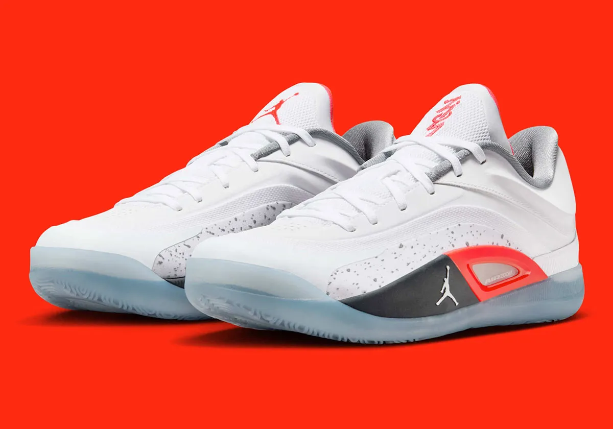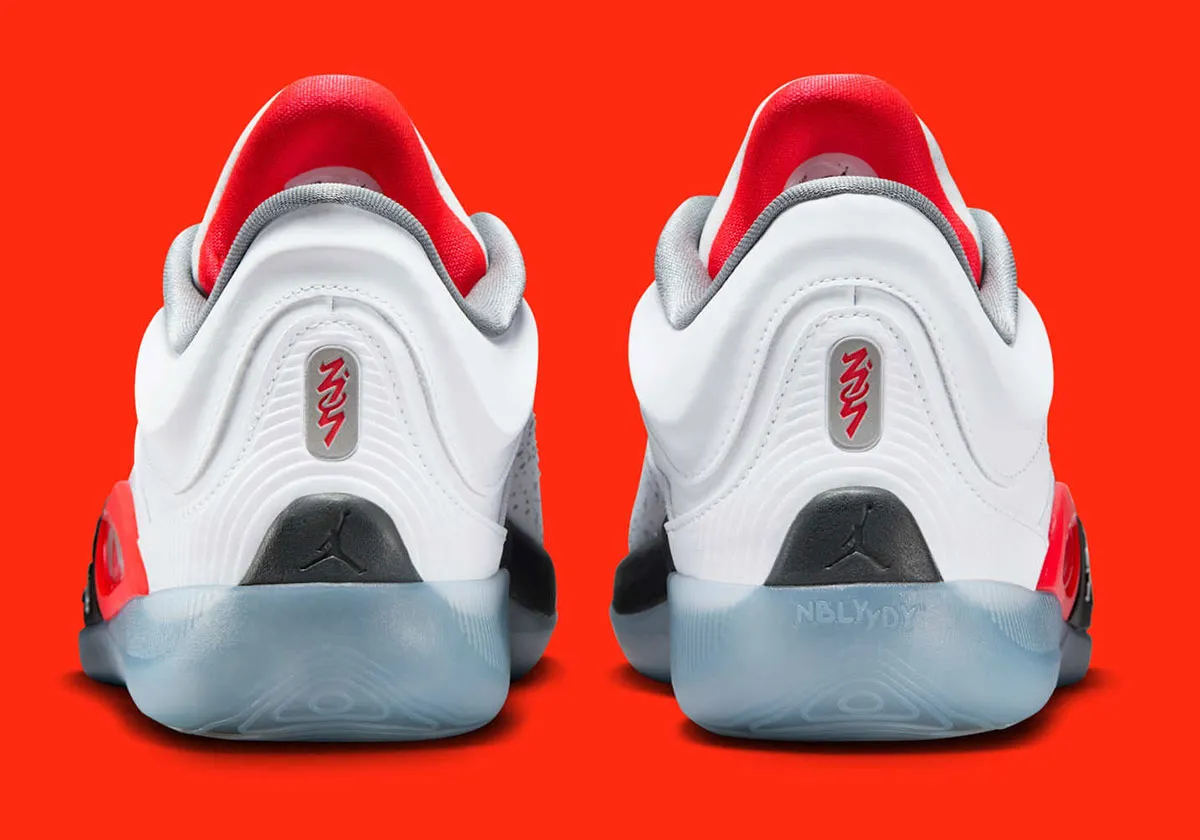 Pour ce nouveau coloris baptisé « Flight », on reste sur du classique avec une tige blanche assortie d’une base latérale en noir et orange avec une partie tachetée de gris sur fond blanc. Le « Jumpman » et le logo de Zion Williamson ressortent également en orange sur la languette.