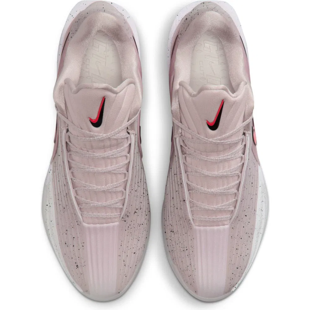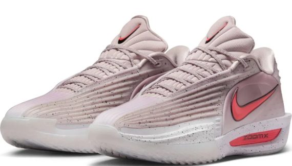 Ce dernier se présente avec une tige entre rose pâle et gris tacheté contrastée par un « Swoosh » couleur saumon, qu’on retrouve également sur une partie de la semelle intermédiaire Zoom X. La semelle extérieure ressort quant à elle en blanc translucide.