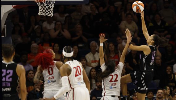 Cependant, l’adresse à 3-points des Valkyries disparaît dans le quatrième quart-temps. À l’inverse, les Mystics accélèrent et passent un 10-2 conclu par un tir lointain d’Emily Engstler pour reprendre l’avantage, ce qui n’était plus arrivé depuis le premier quart-temps (65-64).