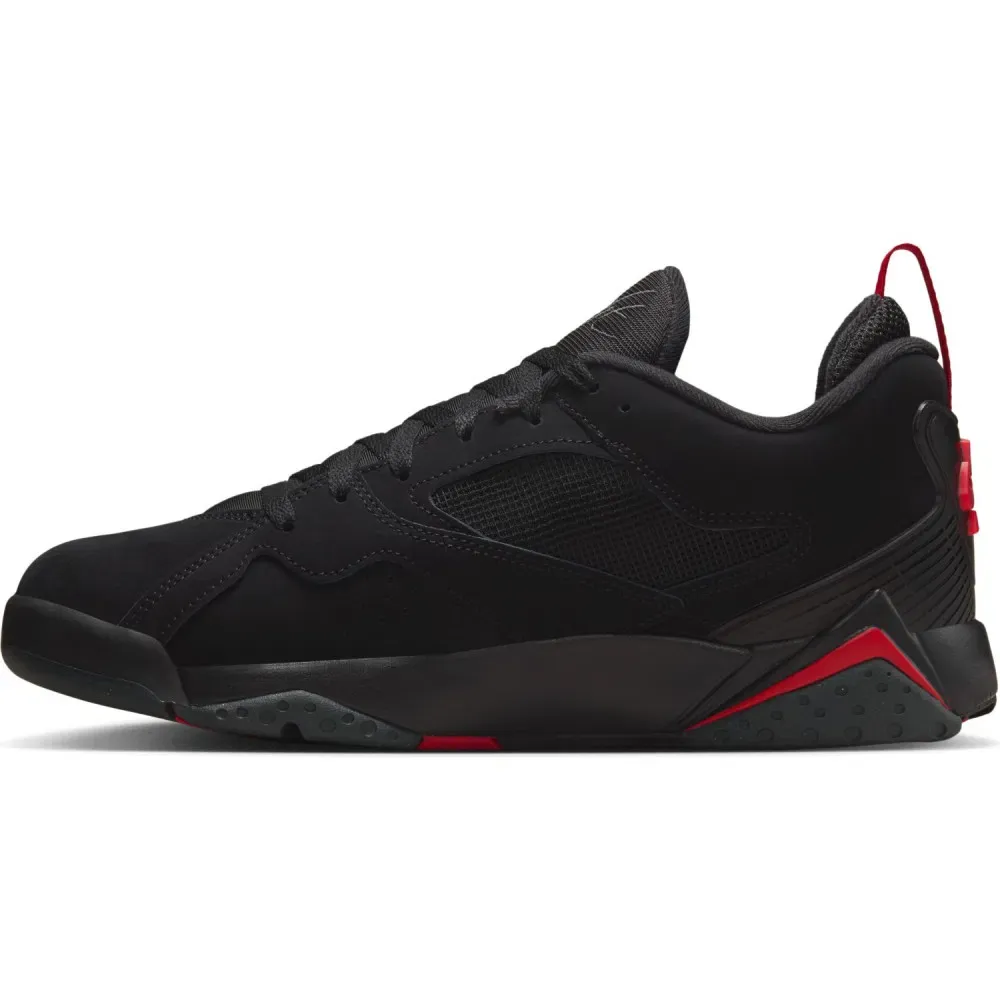 Le dernier coloris en date Desert Camo a été une franche réussite, en voici donc un nouveau, dans le style «Bred» le plus classique, avec une tige noire complétée par des finitions en rouge vif, pour faire ressortir les «Jumpman», l’inscription «Nike Air» sur le talon, ainsi que sur quelques parties de la semelle intermédiaire.