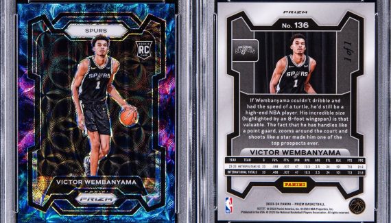 Difficile de contredire le champion NBA 2021 puisqu’en février dernier une carte éditée à un seul exemplaire de Victor Wembanyama avait été vendue pour 860 100 dollars, ce qui était un record pour une carte du Français. Rappelons aussi que l'un des premiers maillots NBA portés par Victor Wembanyama avait été vendu pour 762 000 dollars, en novembre 2023.