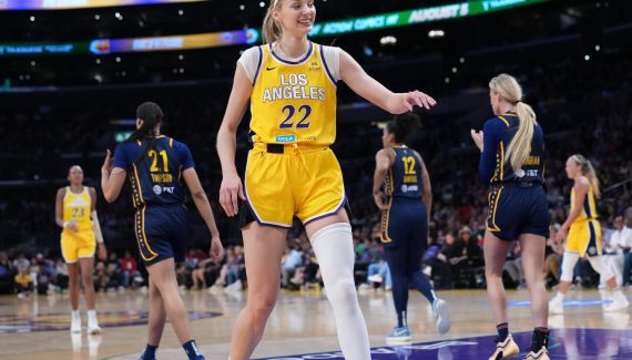 Néanmoins, dans le deuxième quart-temps, la tendance s’inverse puisque propulsée par les trois contres de Cameron Brink en première mi-temps, Los Angeles parvient à reprendre l’avantage et même à atteindre les dix longueurs d’avance grâce à Kelsey Plum (46-36). Cette première mi-temps est interrompue à cause d’un nouveau lancer de sextoy qui est venu, cette fois-ci, percuter les pieds de Sophie Cunningham.