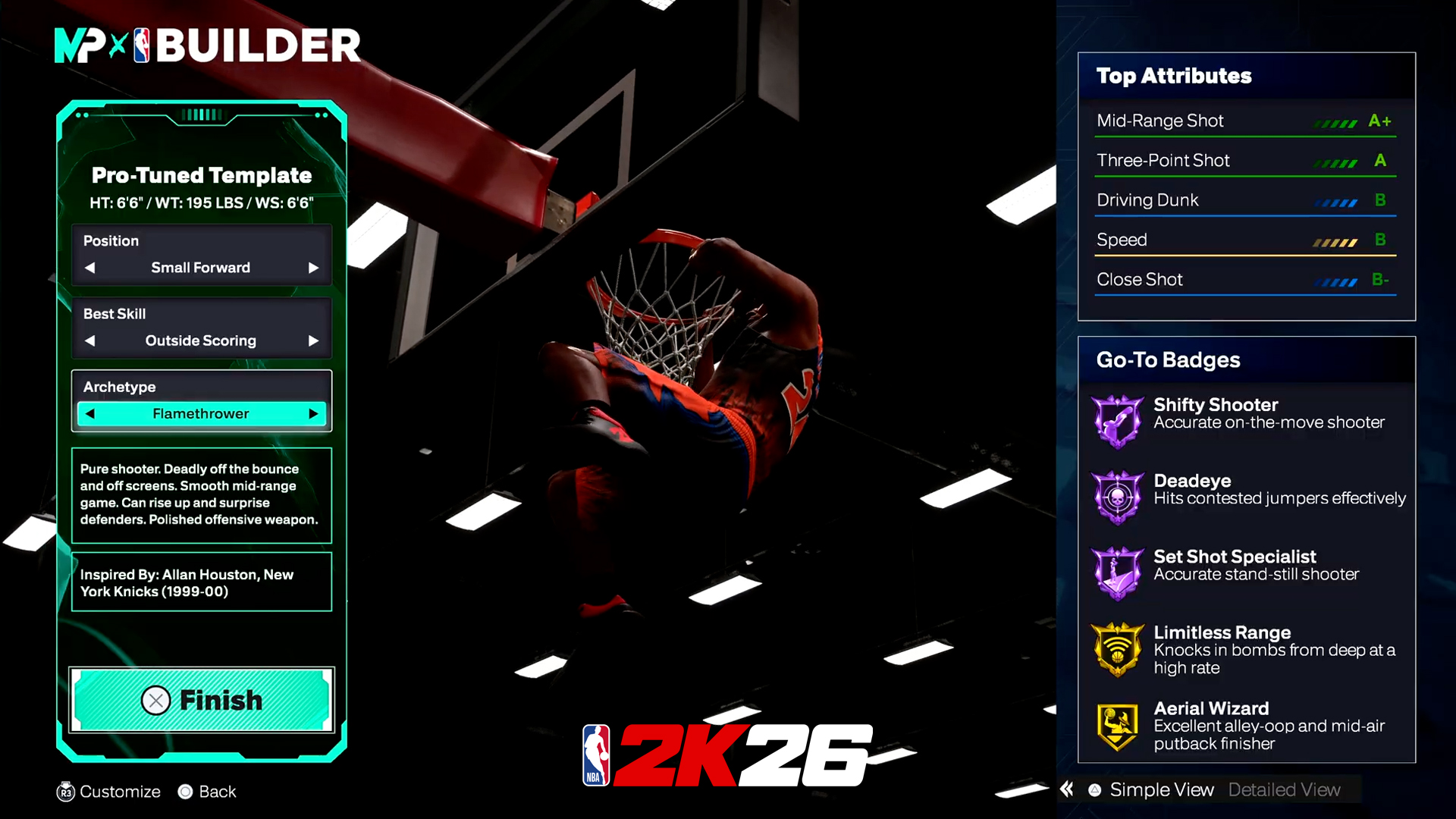 NBA 2K26 a également ajouté l”option « Create Your Own Build » qui passera désormais au crible des dizaines de comparaisons de joueurs avant de choisir les meilleures animations associées au joueur que vous souhaitez créer.