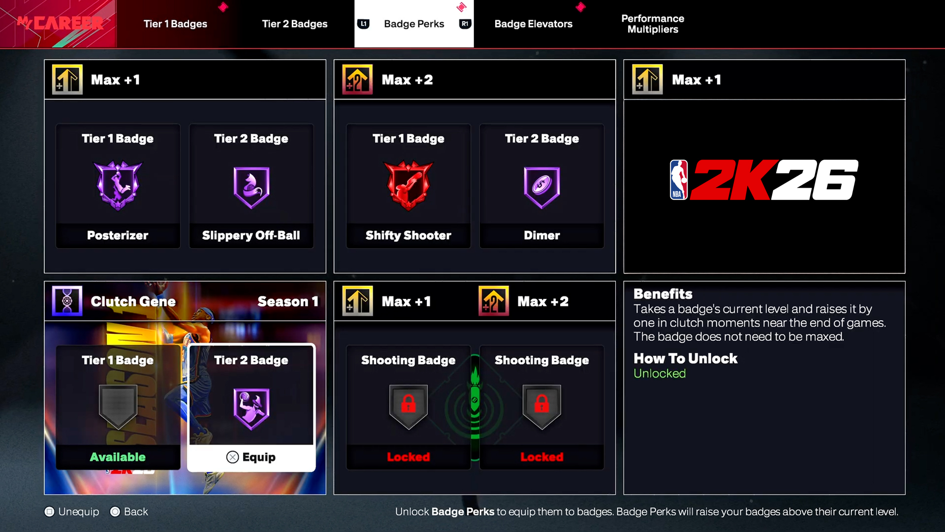 Parmi les dernières infos parues dans la présentation « MyPlayer » de NBA 2K26, on notera le retour des insignes « Max +1 et +2 », pour les pousser jusqu’à deux points au dessus de leur maximum. Les joueurs peuvent également augmenter temporairement leurs insignes d’un niveau dans différentes situations de jeu avec les avantages “Takeover Surge”, “Hot Start” et “Clutch Genes”.