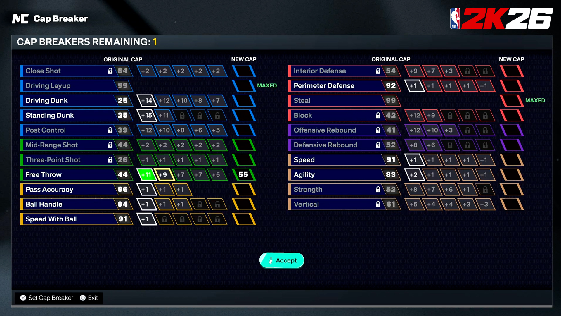 Enfin, les « Cap Breakers » se veulent plus « dynamiques ». Chaque « Cap Breaker » augmentera toujours les attributs les mieux notés et les plus forts d’un point, mais si un joueur choisit de les appliquer à ses attributs les moins bien notés, il obtiendra des bonus plus importants. Cette saison, l’adage qui veut qu’on bosse sur ses points forts ne sera donc plus aussi vrai. La polyvalence, ça a aussi son charme !