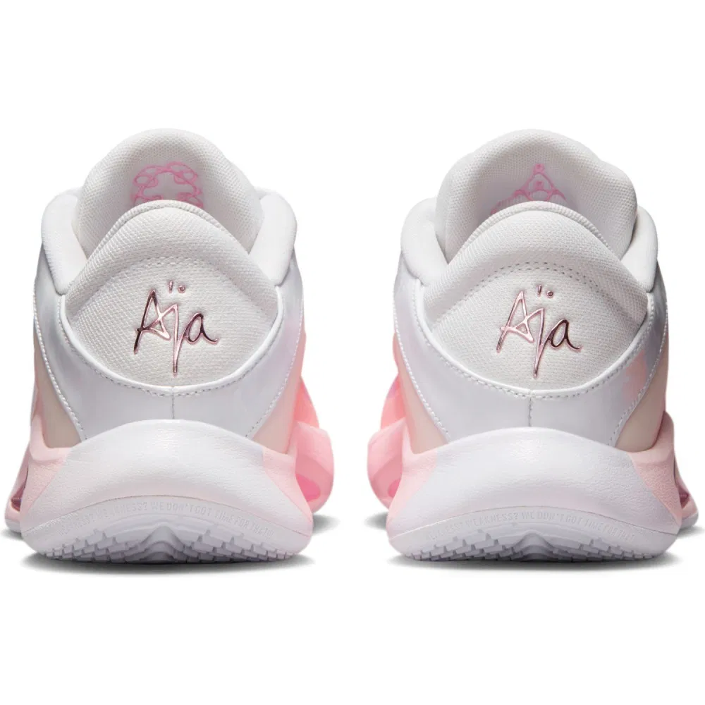 Nike se replonge dans l’histoire d’A’ja Wilson en WNBA avec ce sixième coloris « Draft Pick » de la A’One, sa première chaussure signature. On reste proche des versions « Leo Lights » et « Unapologetic », à ce détail près que le rose emprunté ici pour habiller la tige est le même que celui de la robe que portait A’ja Wilson lors de sa Draft par les Aces, en avril 2018.