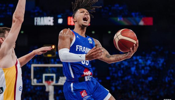 Probablement secoués par Coach Fauthoux dans les vestiaires, les Bleus essaient de montrer un autre visage au retour des vestiaires. Strazel montre encore la voie, interceptant la gonfle pour offrir un dunk tout cuit à Jaiteh, avant de s’infiltrer pour le panier plus la faute. C’est lui encore qui sert Coulibaly à 3-points, qui enchaîne avec une autre réussite et ça ramène la France à -4 seulement. Ca y est, les Bleus sont lancés… Pas tout à fait, à vrai dire.
