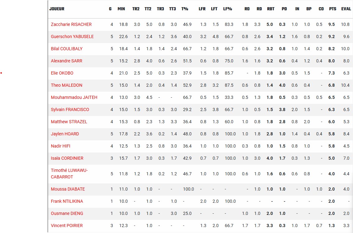 Zaccharie Risacher (9 points, 5 rebonds, 1 interception)