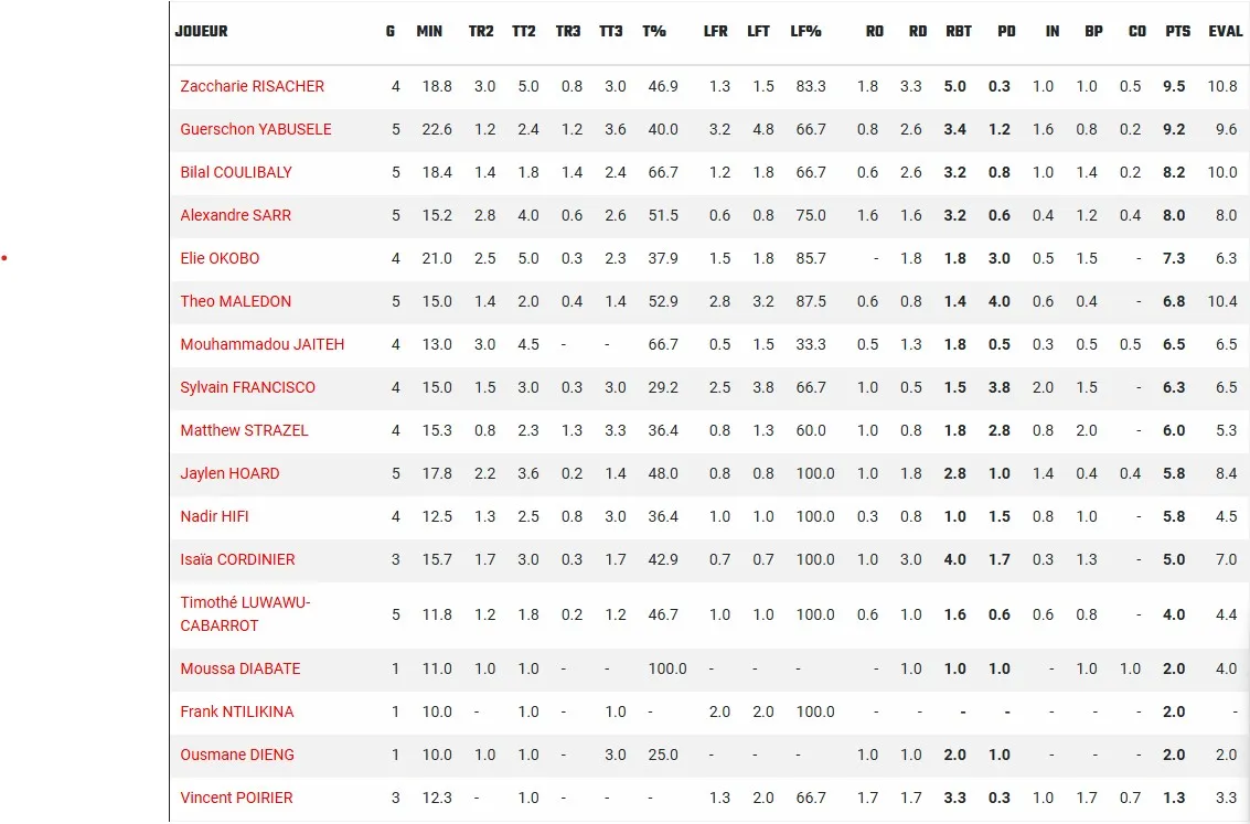 Sur la dynamique d’une saison exceptionnelle en club, Sylvain Francisco a été un véritable booster en sortie de banc. Même si les pourcentages ne sont pas encore là, il a démontré une palette offensive très variée, et sans Matthew Strazel, il va devoir encore affirmer davantage un leadership bienvenu pour ce jeune groupe.