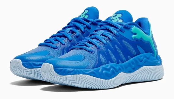 Toujours annoncée pour le mois de septembre, la chaussure s'est dévoilée un peu plus cette semaine avec les premières images officielles d'un nouveau coloris « Blue ». On retrouve une tige aux différentes nuances de bleu, avec des finitions qui ressortent en bleu turquoise. C'est le cas du puma présent sur la cheville mais aussi du logo du joueur, qu'on peut à nouveau voir de plus près, sur la languette et le talon. La semelle intermédiaire composée de mousse Nitro repose sur une semelle extérieure d'un bleu glacé.