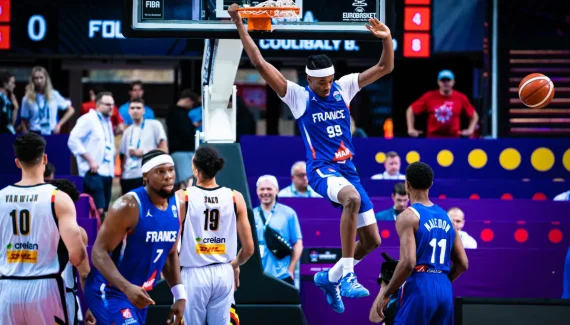 Encore une fois, c’est Bilal Coulibaly qui a relancé la machine en plaçant un dunk en contre-attaque puis deux énormes contres consécutifs ! Le drive fulgurant d’Elie Okobo, les deux lancers de Guerschon Yabusele et le 3-points dans le corner de Zaccharie Risacher ont permis à la France de passer au delà des 20 points d’écart (59-38).