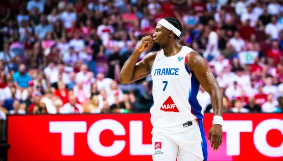 La Pologne démarre sur une action clinique, conclue par un alley oop pour Aleksander Balcerowski. Le ton est donné ! Côté Bleus, plusieurs joueurs sont attendus au tournant, dont Théo Maledon et Isaia Cordinier. Le premier répond d’entrée avec un layup renversé et le nouvel arrière de l’Efes l’imite bientôt. Mécontent de son niveau de jeu, Guerschon Yabusele entre bien dans son match aussi en attaquant le cercle et en faisant filoche de loin. En bon capitaine, il montre la voie avec 9 des 17 premiers points de la France, plus une jolie passe intérieur pour Jaylen Hoard.