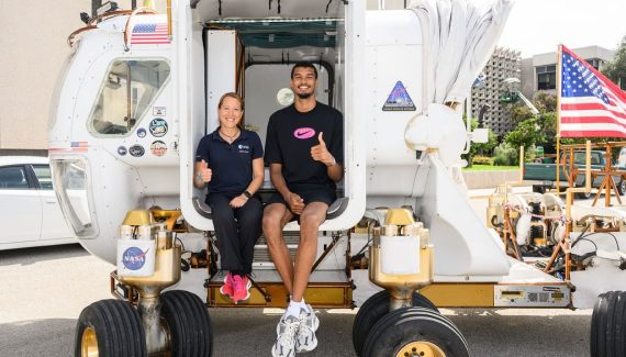 On l’a ainsi vu chez les moines Shaolin en Chine, en train de joueur aux échecs à Las Vegas ou au Chesnay, ou encore en train de s’entraîner avec Kevin Garnett, et le voilà de passage à Houston. Plus précisément au Centre spatial Lyndon B. Johnson pour côtoyer les astronautes de la NASA.