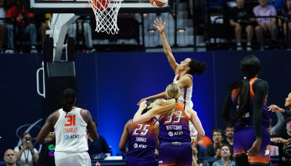 Le Connecticut Sun joue sa fin de saison à fond ! Samedi soir, c’est Phoenix qui s’est retrouvé pris au piège, la faute au boulot de Marina Mabrey (23 points) et Tina Charles (22 points) mais aussi à la fin de match parfaite de Leïla Lacan ! À l’arrivée, malgré la nouvelle grosse prestation d’Alyssa Thomas, le Mercury s’est incliné (87-84) et perd du terrain dans la course au Top 3 à deux matchs de la fin de la saison régulière !