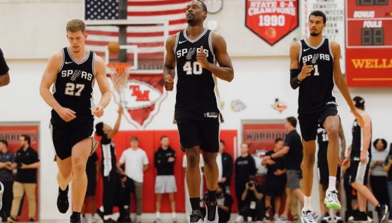 « On voulait juste leur donner une raison de sourire », a expliqué Keldon Johnson, à propos de cette visite dans une salle du lycée Tom Moore à Ingram. C’est à une heure de route de San Antonio, et les jeunes ont pu jouer avec Victor Wembanyama et ses coéquipiers.