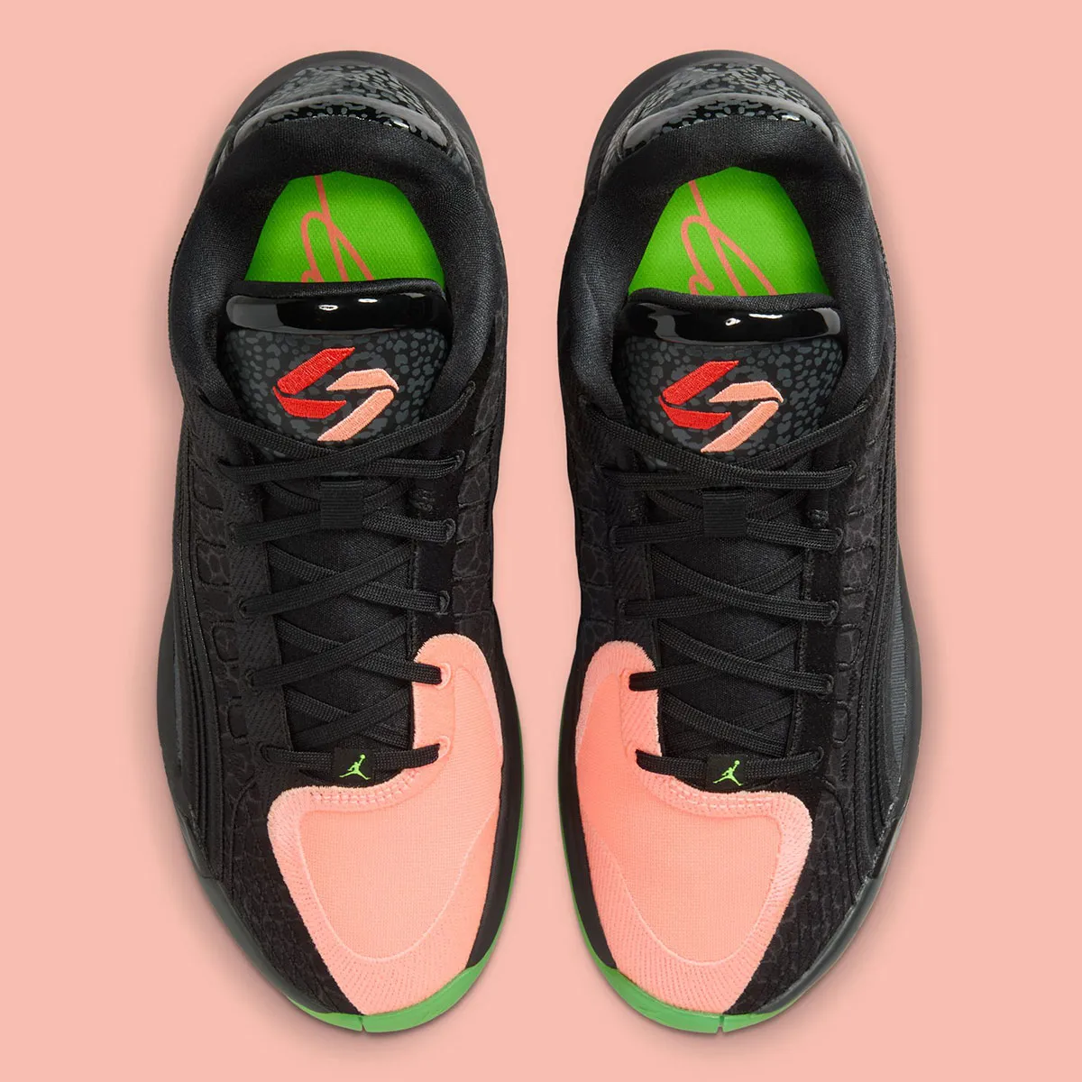 Cette quatrième version reprend les mêmes imprimé que la toute première Nike Air Safari de 1987. À noter que c’est la première fois que la tige ressort principalement en noir par rapport aux Jordan Luka précédentes.