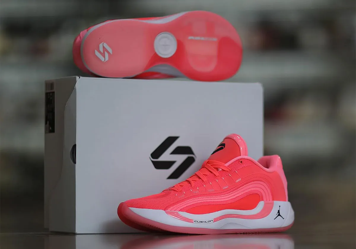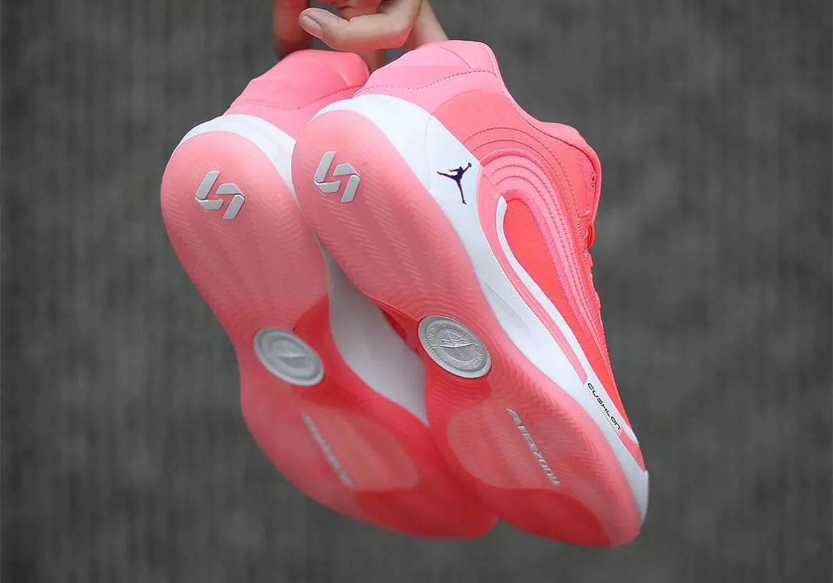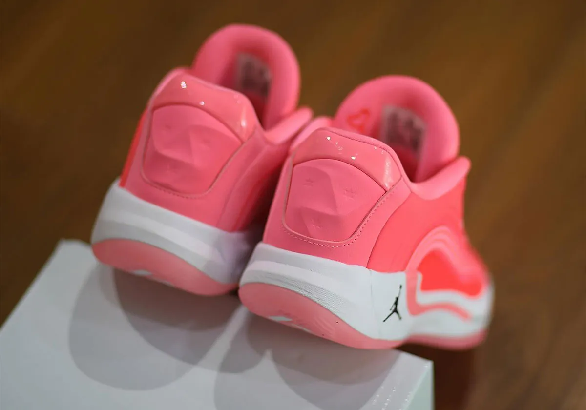 La Jordan Luka 4 « Hčerka » opte donc pour une tige aux différents tons de rose. Seul le logo du joueur ressort en noir sur la languette. La semelle intermédiaire blanche en Cushlon est également assorti d’un « Jumpman » en noir, tandis que le revêtement extérieur en caoutchouc complète l’ensemble d’un rose translucide.