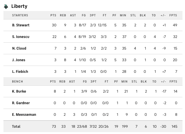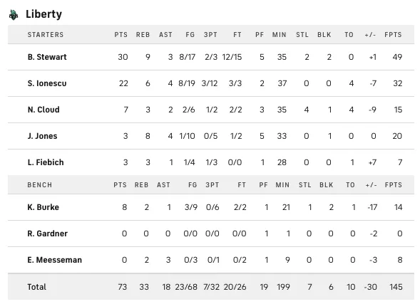 Comme lors du Game 2, Marine Johannès n'est de son côté pas rentrée en jeu du côté du Liberty…