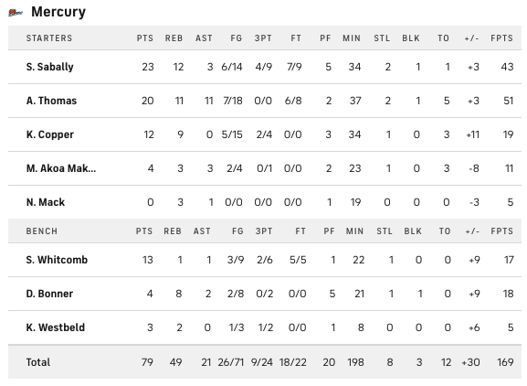 Après avoir parfaitement débuté la rencontre, porté par des fans prêts à s'enflammer à la moindre étincelle (22-15), le Mercury a ensuite dû contenir le retour en force du Liberty, revenu à 42-41 avant le 3-points de Kahleah Copper pour boucler la première mi-temps (45-42). La tension n'a fait que s'accentuer ensuite dans un match où chaque possession s'est jouée à l'extrême limite niveau agressivité.
