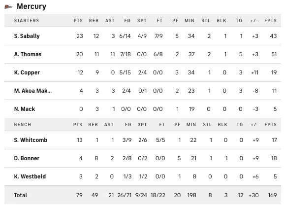 Puis c'est Kahleah Copper qui a fini par faire sauter le bouchon d'un ultime lay-up à 32 secondes de la fin. Comme un symbole, c'est Alyssa Thomas qui a mis le dernier lancer du match pour atteindre la barre des 20 points (une première pour un triple-double en playoffs) avant de laisser enfin le camp du Mercury exploser de joie !