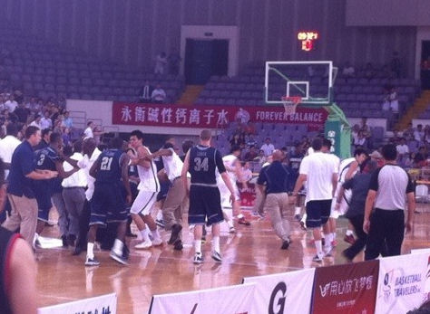 Jeudi soir (pour eux…) avait lieu à Pékin une rencontre amicale entre l’équipe de Georgetown et les Bayi Rockets. Un match qui s’est terminée en bagarre générale si l’on en croit des clichés postés sur Twitter et sur des sites d’information chinois.