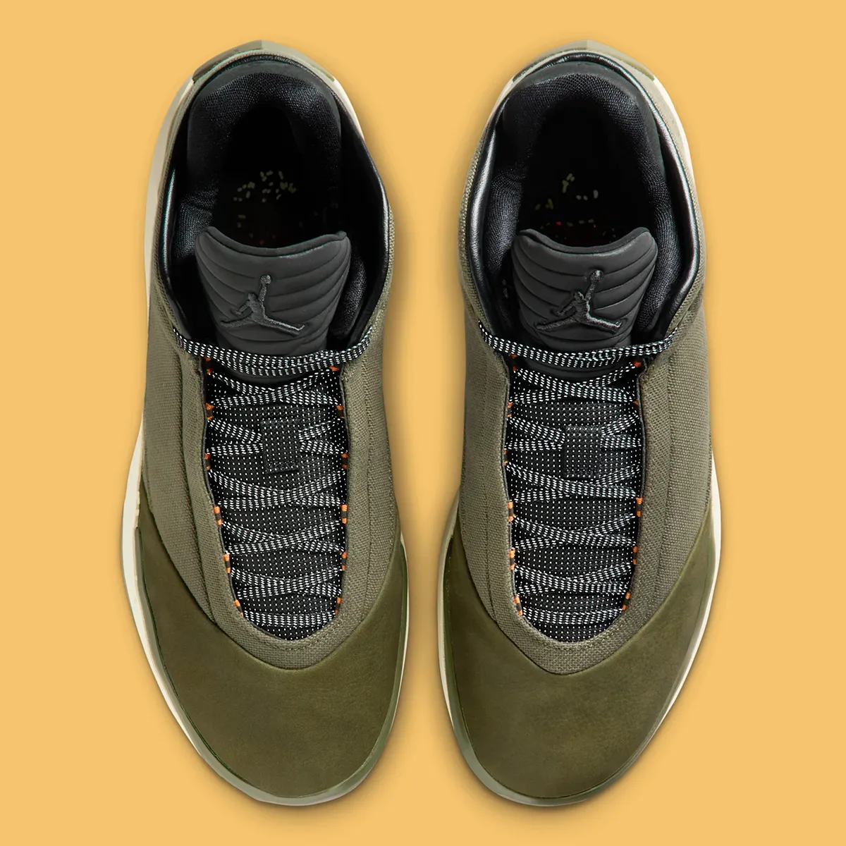 Dans un style automnal, la paire se présente avec une tige vert foncé « olive », une languette et un col en noir, et d’infimes finitions en orange au niveau des œillets. Surtout, Jordan Brand continue d’innover en utilisant de nouveaux matériaux.