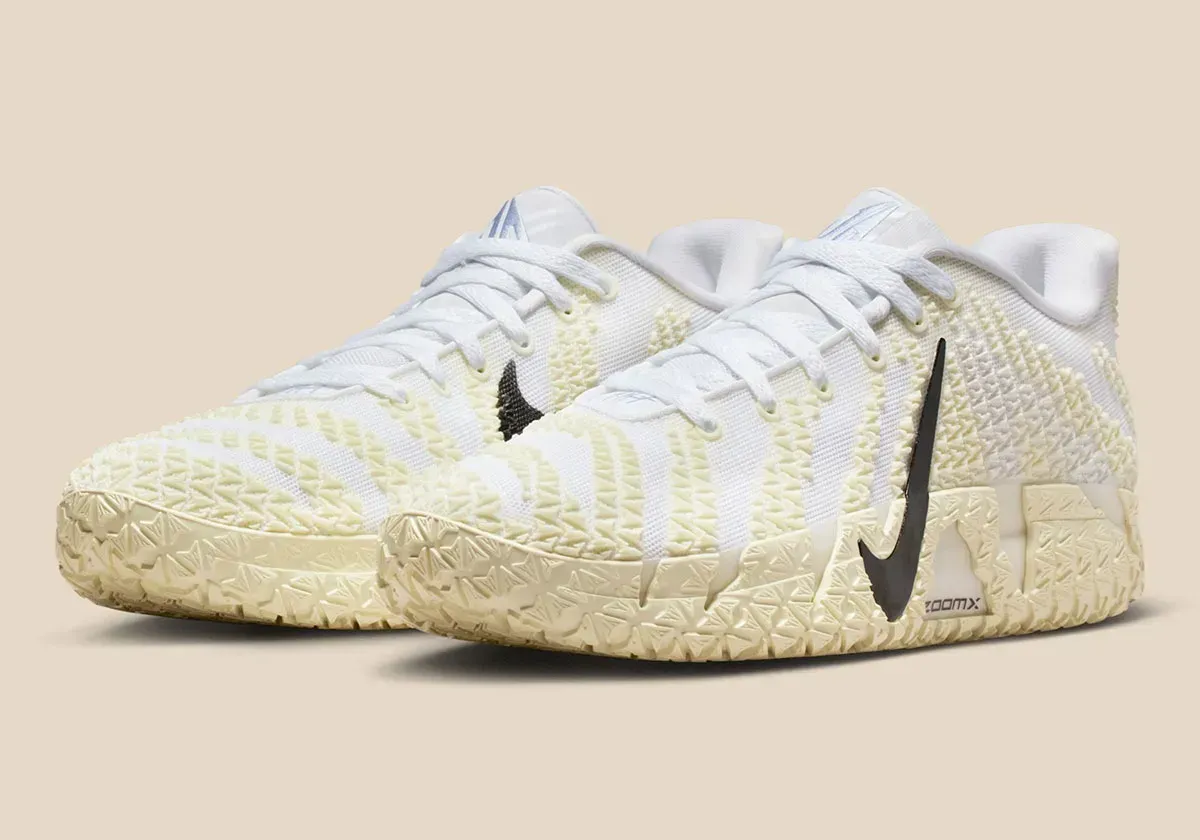Les images officielles de ce nouveau coloris « Coconut Milk » présentent une base blanche assortie de finitions couleur vanille et d'un « Swoosh » noir de chaque côté. Le logo de Ja Morant ressort en gris sur la languette, tandis que l'inscription « Twelve » sur le talon apparaît en vert.