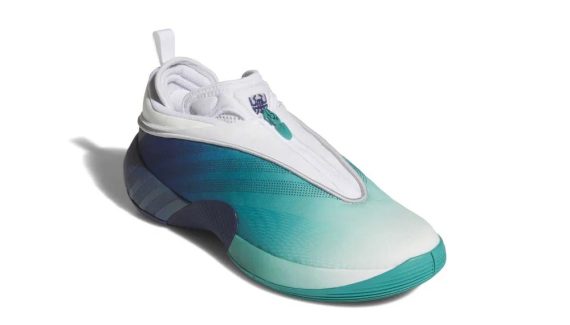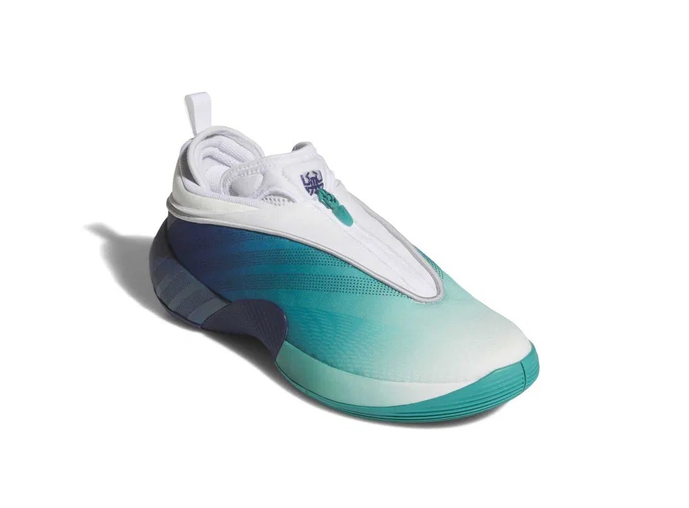 L’arrière est en pleine montée en puissance dans ces dernières semaines avant la reprise, et adidas va l’accompagner avec la sortie d’un nouveau coloris de la D.O.N. Issue #7, nommé « Start of Season ». La base de la tige se présente sous un dégradé allant du blanc au bleu foncé, complétée par une partie supérieure en blanc.