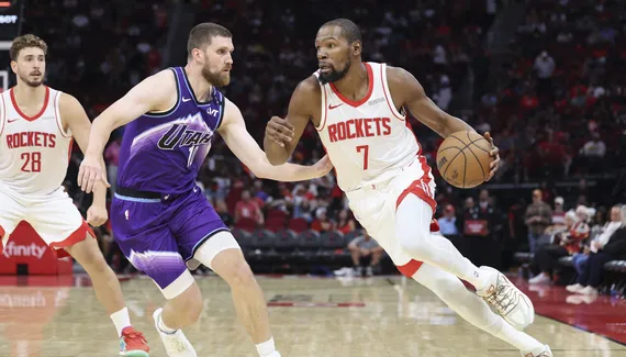 C’est donc face au Jazz que Kevin Durant a effectué ses premiers pas sous les couleurs des Rockets. Si le nouvel ailier de Houston a connu un début de match compliqué en manquant ses trois premiers tirs, il n’a plus rien raté après ! «KD» a fini sa soirée avec 20 points en 23 minutes à 7/10 au tir dans la victoire des Rockets (140-127).