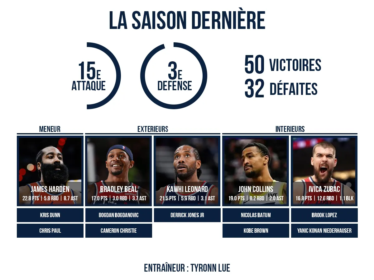 Avec ses deux leaders en deuxième partie de carrière (37 ans pour James Harden, 34 pour Kawhi Leonard) et fragiles, la franchise ne peut plus se permettre d’attendre si elle veut se mêler à la lutte pour le titre. La fin de saison dernière avec un groupe au complet (18 victoires – 3 défaites pour finir la saison régulière) est un bon rappel de ce dont sont capables ces Clippers lorsqu’ils évoluent à plein régime…